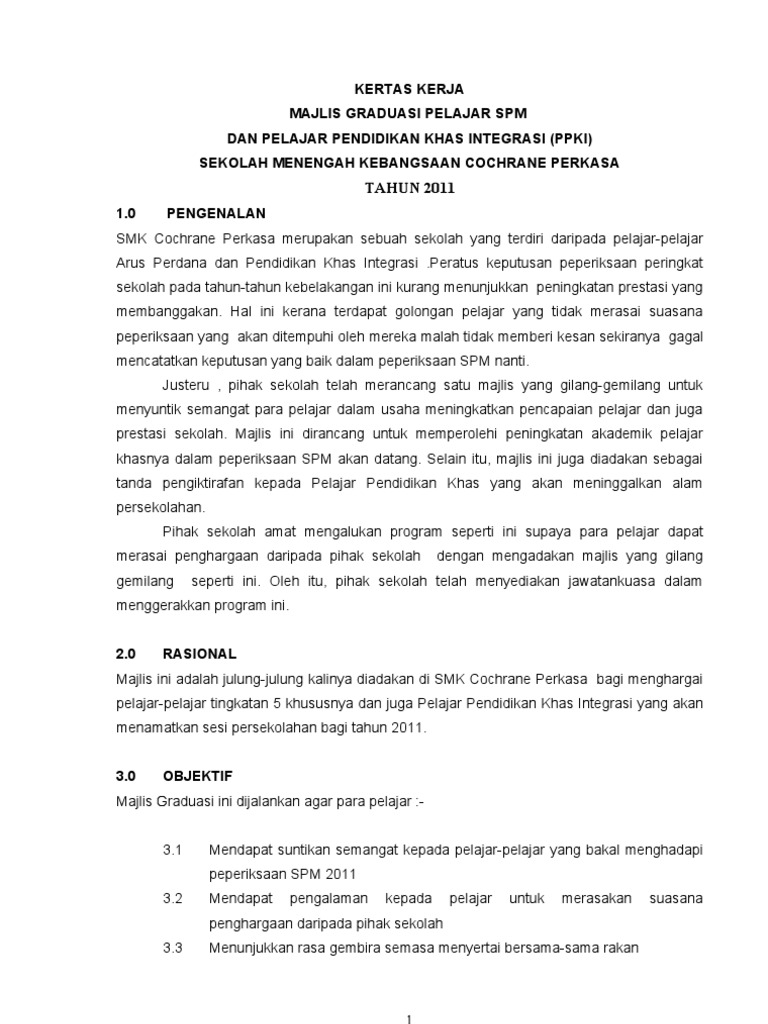 Contoh Ketas Kerja Program Hari Graduasi Kolej Vokasional